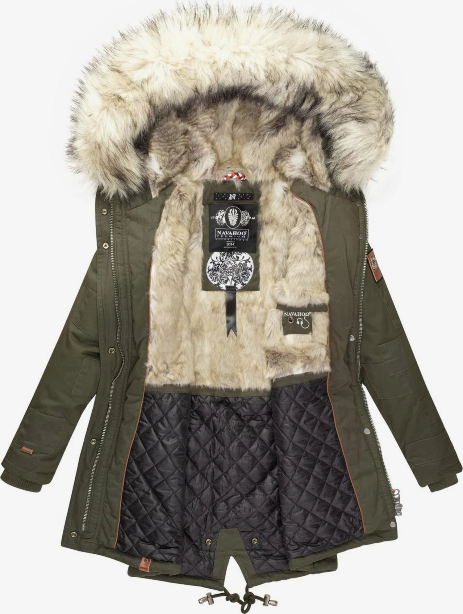 EffenKatoenDrukknopenCapuchon met nepbont kraagGeribd ceintuurtjeRonde zoomVerborgen ritsVerlengd rugpandBorstzakBinnenzakOpzet-/flapzakVerstelbare tailleTrekkoord in de boordLabel patch/label flagOp staal nadenVoelt zacht aanWarm gevoerdRitssluiting
