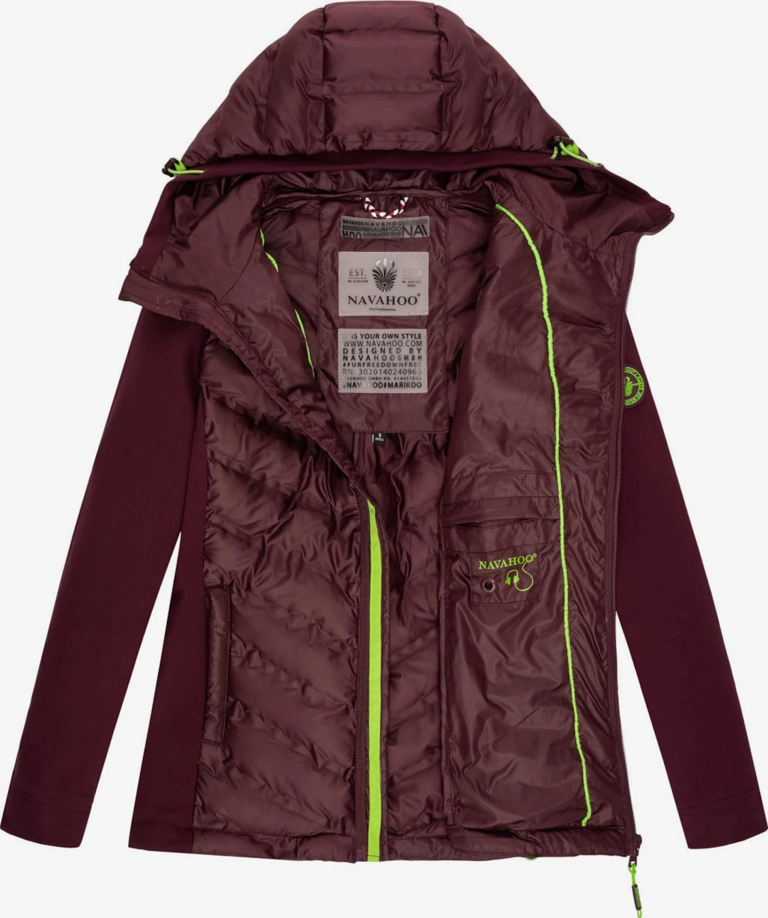 EffenGewatteerde jasRitssluitingRitsvak binnenGevoerde capuchonCapuchon met opstaande kraagGetailleerd modelRitszakken aan de zijkantContrasterende insertsLabel patch/label flagGladde stofLicht gevoerdRitssluiting